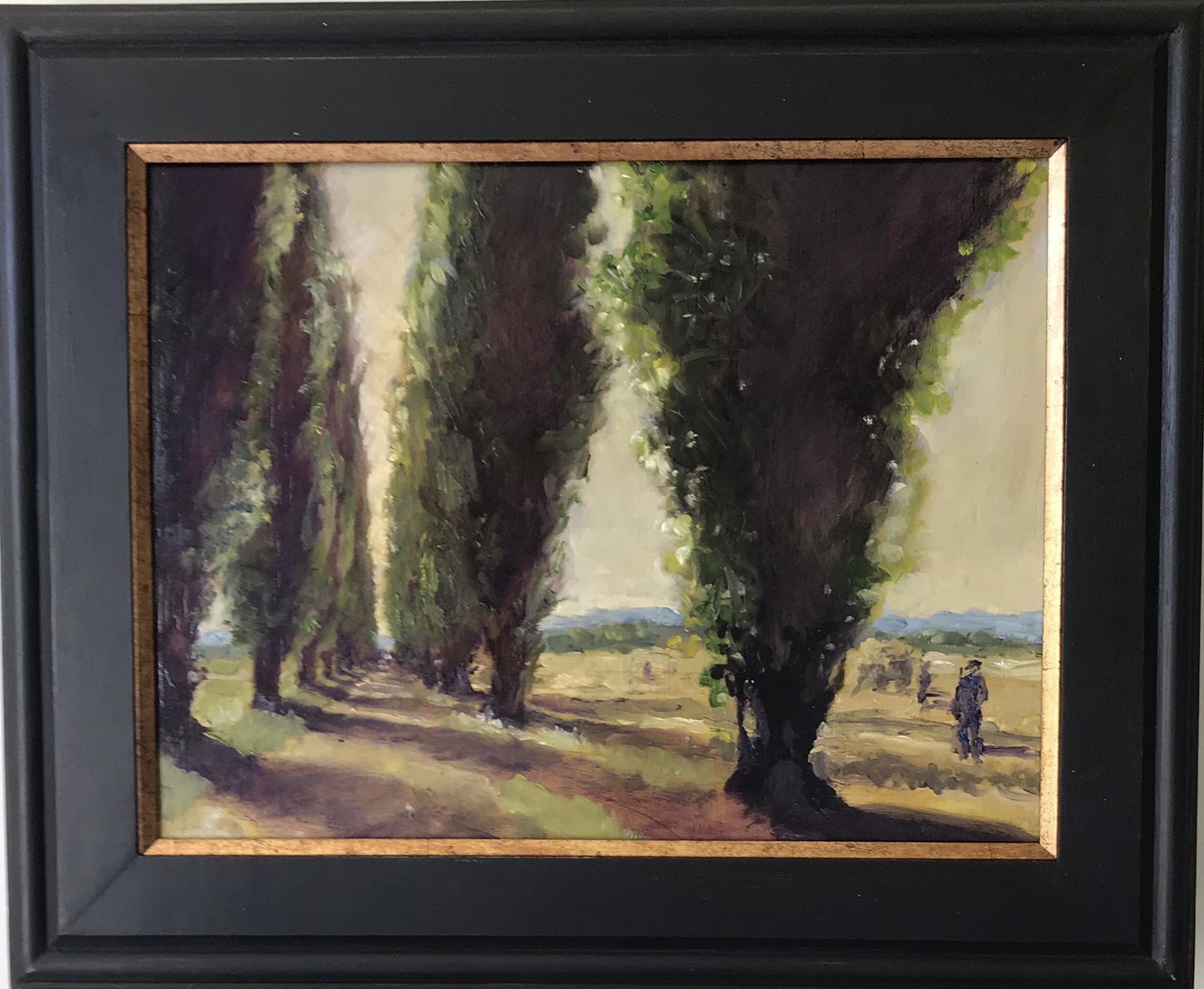 Name Lombardy Poplars (Framed) Oils on Ply – 2023 Size 17” x 13” 368mm x 330mm